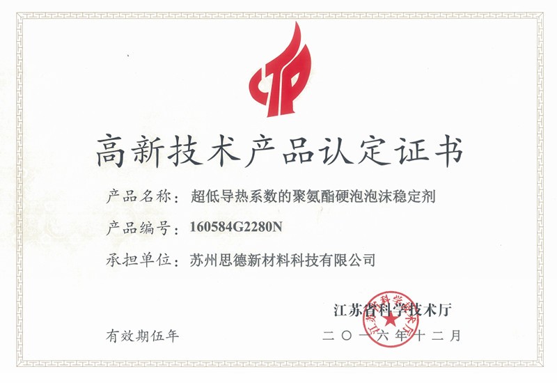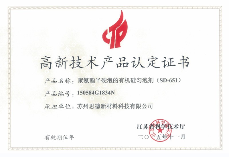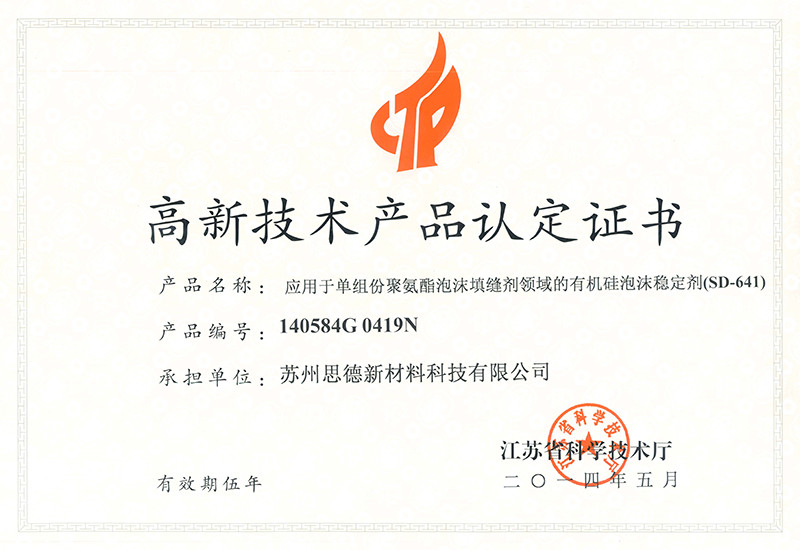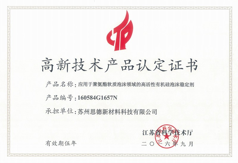 公司目前在售產(chǎn)品主要有聚氨酯硬泡用有機(jī)硅泡沫穩(wěn)定劑系列產(chǎn)品、聚氨酯軟泡用有機(jī)硅泡沫穩(wěn)定劑系列產(chǎn)品、聚氨酯OCF用有機(jī)硅泡沫穩(wěn)定劑系列產(chǎn)品、聚氨酯高回彈用有機(jī)硅泡沫穩(wěn)定劑系列產(chǎn)品、聚氨酯慢回彈用有機(jī)硅泡沫穩(wěn)定劑系列產(chǎn)品,其中有20多個(gè)產(chǎn)品被認(rèn)定為江蘇省高新技術(shù)產(chǎn)品。